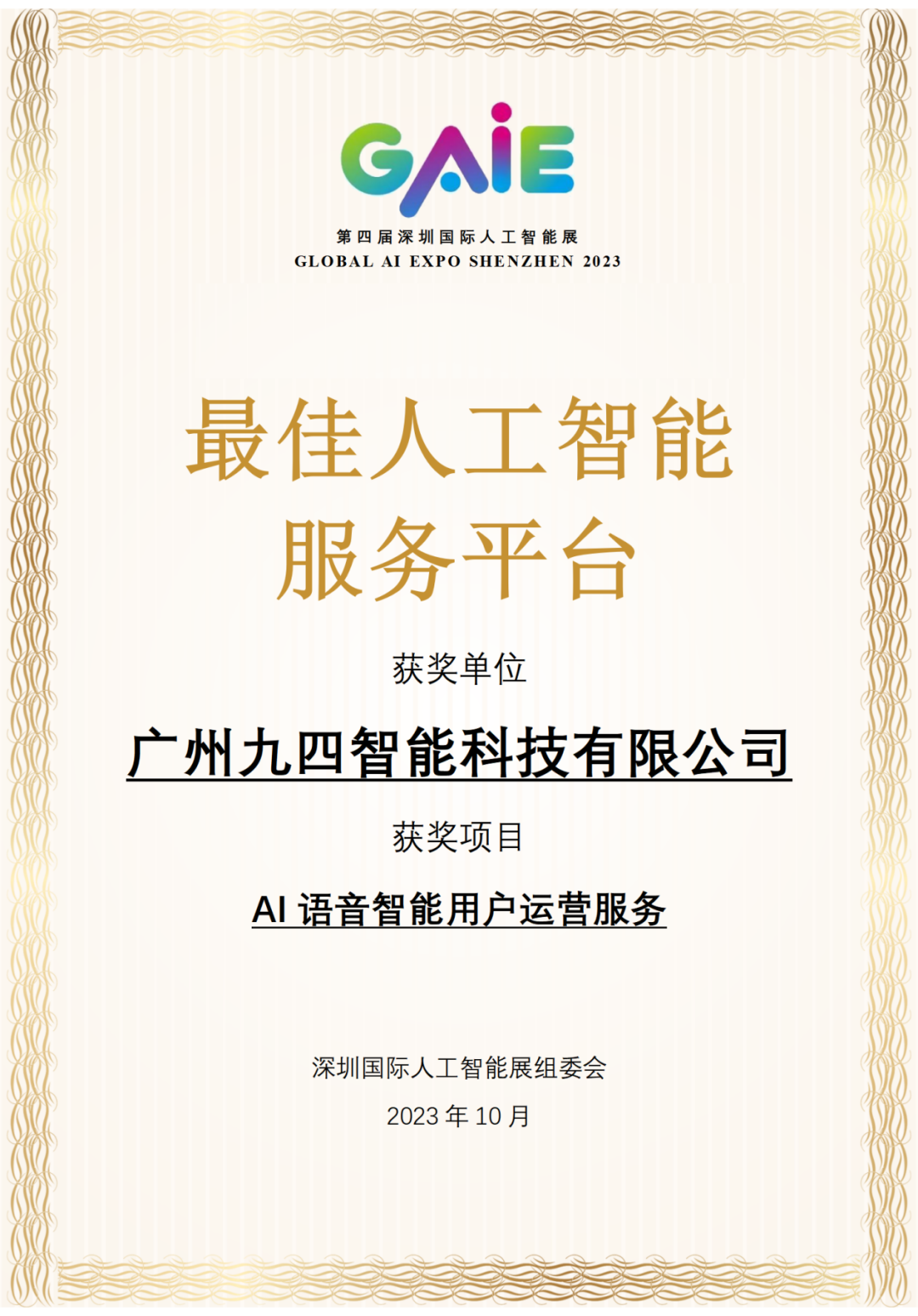 九四智能出席第四届深圳国际人工智能展,并获评最佳人工智能服务平台