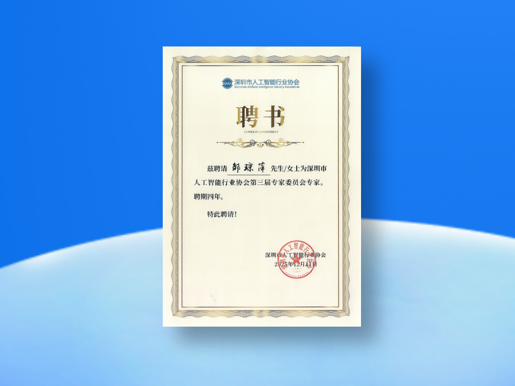 九四智能邹琼萍受聘为深圳市人工智能行业协会第三届专家委员会专家