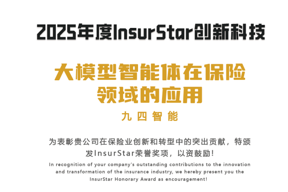行业认可!九四智能荣膺2025年度InsurStar创新科技奖项